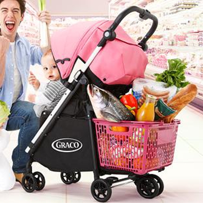 話は逸れますが、3輪でもいいという方はベビーカーをまだ購入していない方はめっちゃおすすめですよ。グレコのこのカゴが装着できるベビーカー!