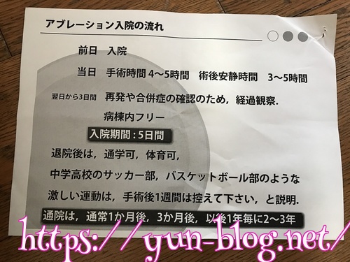 最後、24時間ホルター心電図で寝ている間や学校へ行っている間の心電図をみるという目的でします。