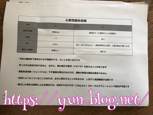今回子供が心臓検診で疑いのある病気は『心室期外収縮』という病名でした。