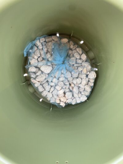 今回違うプランターの写真ですが、土を入れる前に石を入れてから土を入れます。