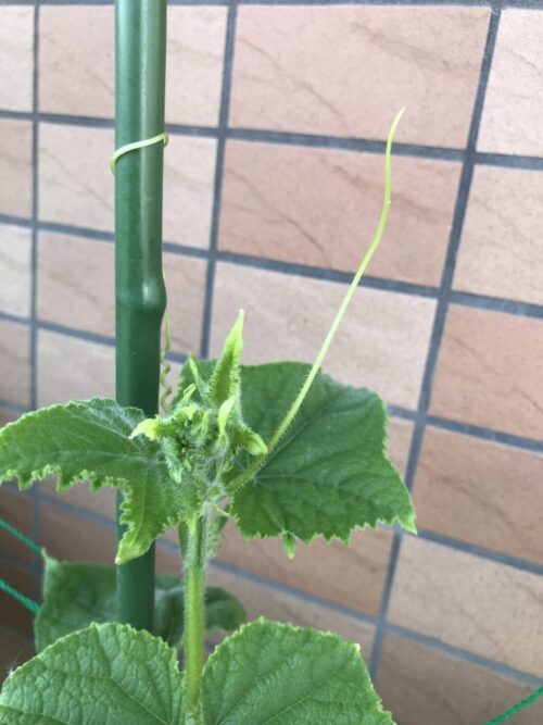 キュウリの場合は、実が1つついてきたら行っていきます。
