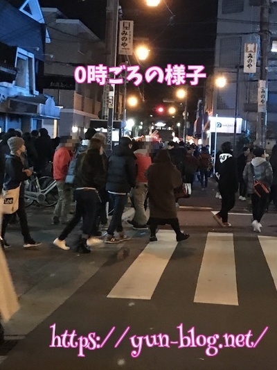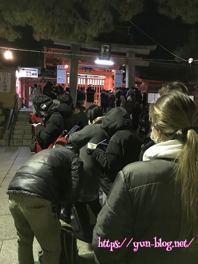 前にいる人たちは、参拝する人もいれば、0時になるまであと2時間そこで待つという人も・・