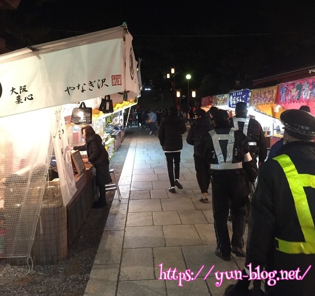 住吉大社は31日の17時に一度閉門して、そして12月31日の夜22時にまた開門します。