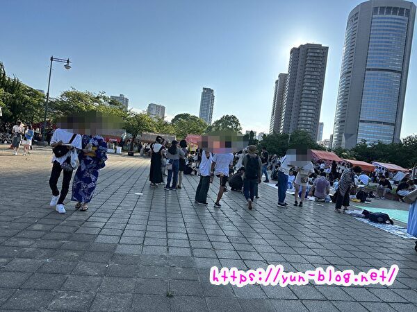 ここでしっかり見たい方は夕方早ければ15時とか16時~頃から場所取りをすることをおすすめします。